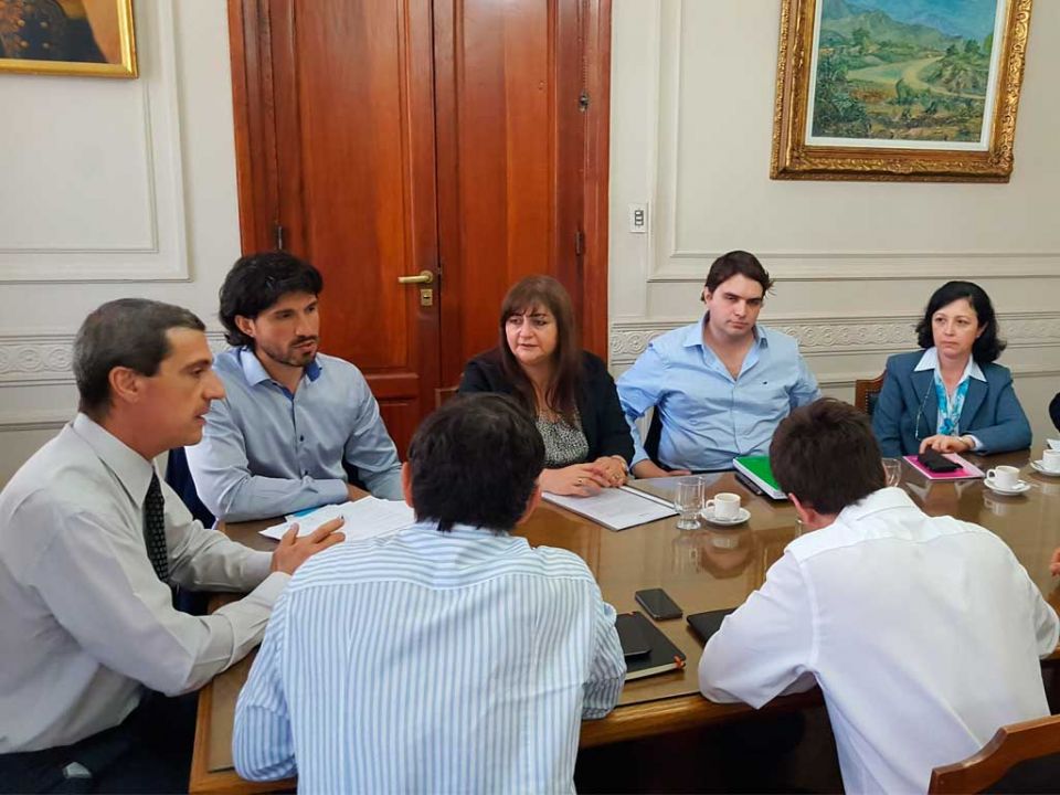 Siguiendo las instrucciones del gobernador Sergio Casas, el ministro de Hacienda Ricardo Guerra se reunió el viernes en su despacho con funcionarios nacionales que llegaron a La Rioja con el propósito de coordinar agendas de trabajo en común con sus pares de la provincia. La comitiva nacional estuvo integrada por el secretario de Provincias Alejandro Caldarelli y Paulino Caballero, subsecretario de Relaciones con Provincias del Ministerio del Interior, Obras Públicas y Vivienda de La Nación, entre otros. En el marco de su visita, Caldarelli se reunió con el gobernador Sergio Casas y el vicegobernador Néstor Bosetti en un encuentro en el que también participaron el ministro de Infraestructura Juan Velardez, el secretario de la Gobernación y funcionarios del ministerio de Planeamiento e Industria para abordar la problemática de las empresas del Parque Industrial, entre esos aspectos la reexpresión de los Bonos Fiscales. En materia de obras públicas también fue objeto de análisis la redeterminación de precios a partir de nuevas resoluciones ministeriales de la Nación que permitieron la actualización de los valores del costo de las viviendas. En horas de la mañana del viernes se reunieron con el ministro de Hacienda Ricardo Guerra y equipo de trabajo, quien dio cuenta de la presencia indicando “le hicimos conocer cómo estamos funcionando en lo que hace a la estructura administrativa en nuestro ministerio y cómo avanzamos en materia de cumplimiento de normas presupuestarias”. Agregó que también se brindó información “sobre cómo está la formulación del Presupuesto 2017 de La Rioja”. Dijo “fue oportuno para presentar nuestro equipo de trabajo con toda su estructura y funcionamiento, haciéndole un pantallazo general sobre el desenvolvimiento y marcha de proyectos, perspectivas y también respondimos a consultas puntuales sobre la tarea de nuestras áreas”.Consideró que “este encuentro se da en el marco de una muy buena relación institucional con el gobierno nacional a pesar de pertenecer a signos políticos distintos” y agregó “hemos mantenido una reunión abierta y amena donde les pudimos hacer ver cómo trabajamos, sobre todo lo respetuoso que somos en la administración financiera de la provincia, en el cumplimiento del presupuesto, respetándose los plazos constitucionales y que si bien vence el sábado, vamos a hacerlo el lunes en la Legislatura Provincial”. Paulino Caballero, subsecretario de Relaciones con Provincias del Ministerio del Interior, Obras Públicas y Vivienda de La Nación dio cuenta que la presencia en La Rioja es “para coordinar agenda con los funcionarios de las áreas de Hacienda, Obras Públicas, Industria y Producción, para trabajar de manera mancomunada lo que resta del año y el 2017, pero además proyectar lo que vendrá después”. En este sentido describió que, estas conversaciones servirán para “encarar los proyectos productivos, obras y de administración financiera”, pero además “ponernos a disposición de la agenda local y avanzar de manera conjunta con las jurisdicciones de la Nación y la provincia”. Destacó que tras la reunión con el ministro de Hacienda y sus colaboradores “me llevo una muy buena impresión” y remarcó “están muy avanzados en los proyectos de administración financiera”. Por su parte Nora Serrani, subsecretaria de Administración Financiera del Ministerio de Hacienda de La Rioja informó que “esta es una primera reunión de conocimiento entre las partes, si bien estamos en contacto continuamente, pero el encuentro presencial es mucho más importante”. “Dialogamos sobre cómo venimos trabajando desde distintas áreas como Administración Financiera, Recursos Humanos e Impositiva”, dijo y agregó “queremos que aquí tengan una visión de primera mano, que sepan que tenemos la información al día, que es la que intercambiamos continuamente con ellos” Puso de manifiesto “recibieron mucho apoyo de La Rioja” y sostuvo “las relaciones de intercambio son importantes para conocernos y trabajar en equipo” y puntualizó “la reunión ha sido muy productiva”.
